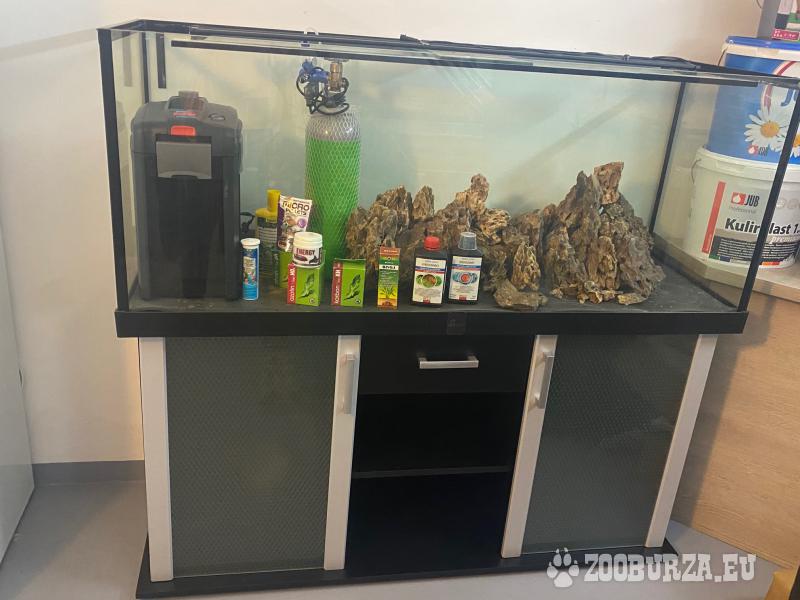 Popis: Prodám akvarijní set používaný cca 1 rok. Set zahrnuje akvárium o objemu 480 litrů (150x50x60 cm) + stolek pod akvárium MODERN černý (160x60x77 cm) + veškeré příslušenství a dekorace (viz. foto) + cca 60 kg lávového dna. Cena za celý set 12 000 Kč.