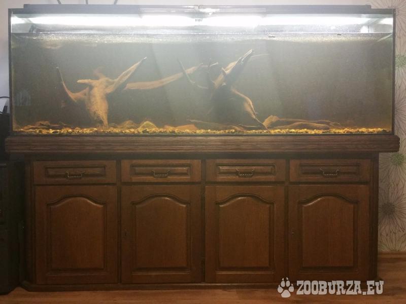 Popis: Délka 197 cm, výška 65 cm, šířka 50 cm. Akvárium je na dřevěné rustikální komodě, ve které je vestavěný ocelový stojan. V komodě jsou dvě skříňky. S součástí jsou i dva světelné kryty, každý na dvě 90 cm zářivky. Na zadní stěně akvária je přilepené plastické 3D pozadí. Komplet je nádherný bytový doplněk. Původní cena akvária se skříňkou byla 31 tis. Kč. Nyní prodávám vše za 14500,-Kč. Podmínkou vlastní naložení a odvoz.