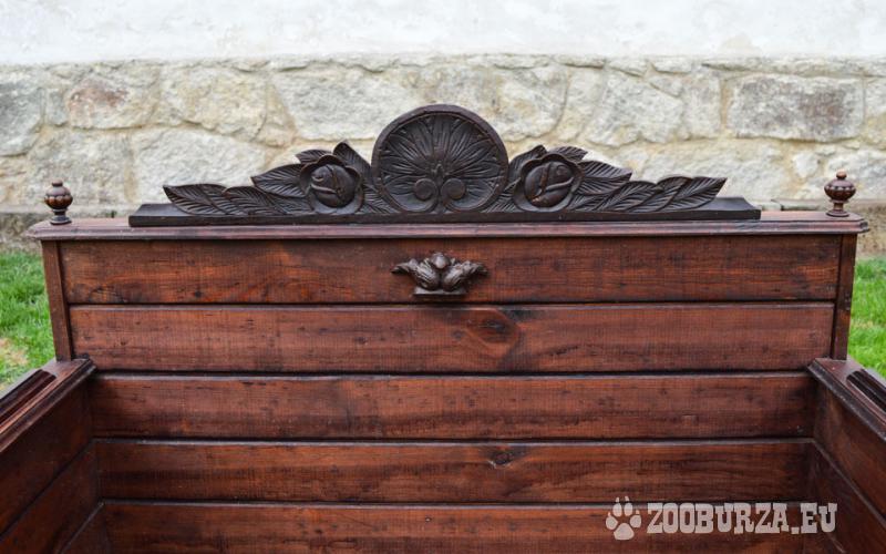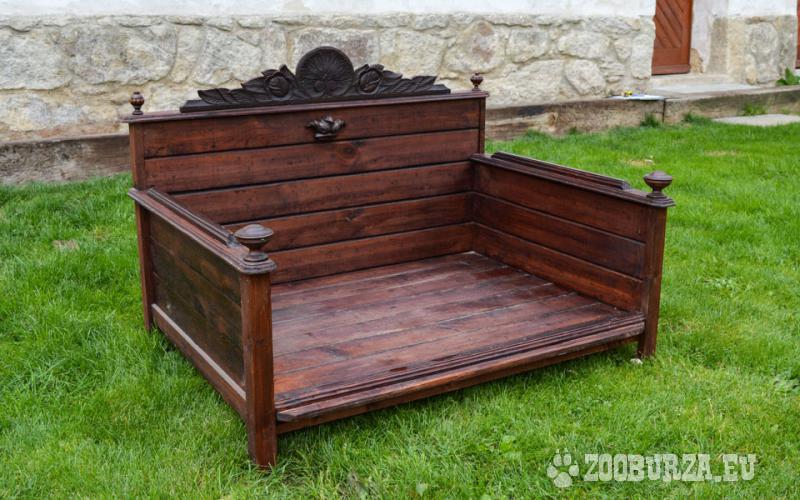 Popis: Dřevěná postel pro psa s řezbou na čele. Postel: výška zadního čeka: 70 cm šířka: 110 cm délka: 87 cm Doprava po ČR od 500 KČ